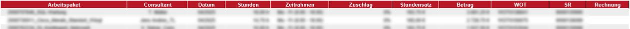 (Eventuelle Zuschlagszeiten siehe die entsprechenden Spalten in der Tabelle. In den Servicescheinen gibt es ggf. weitere Zeiten mit Zuschlagsgrenzen, diese waren dann aber nicht zwingend notwendig und werden nicht berechnet.) Bitte auch auf Pauschalen und ggf. unterschiedliche Stundensätze achten und einen Kontrollblick auf die Beträge der Rückmeldungen im Vergleich mit der Übersicht werfen – im Fall von Abweichungen bitte um Rücksprache und Abstimmung.
